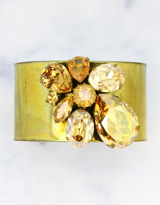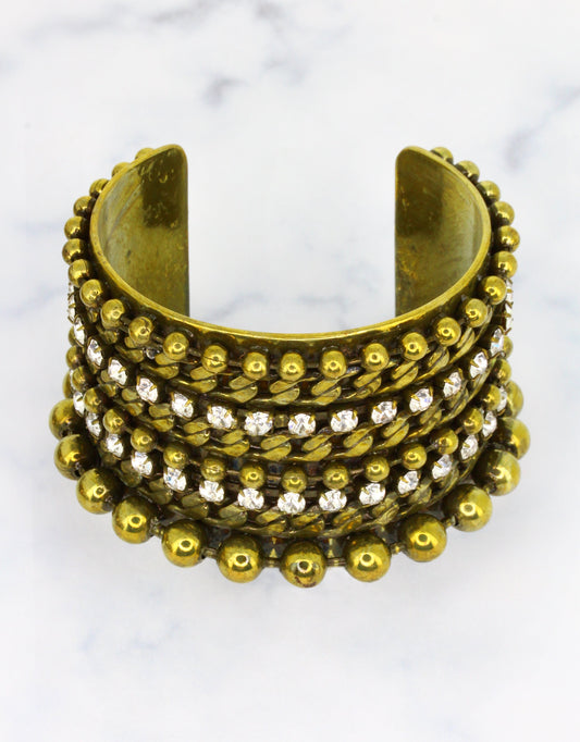 This beautiful brass cuff is adorned with mixed genuine crystals, making it a truly stunning piece of jewellery. The adjustable cuff means that it can be worn by anyone, and the vintage design makes it a truly unique piece. The Vintage Malisaa Cuff is sure to impress. Order yours today!...