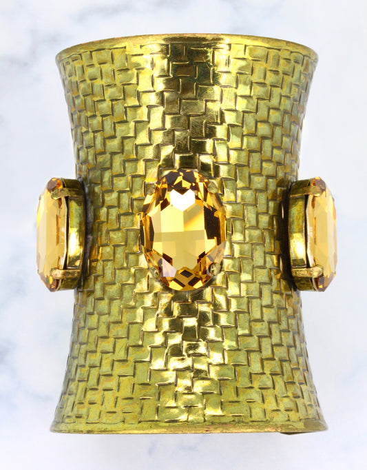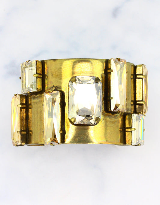 With its unique shape and beautiful crystals, the Vintage Sandrine Gypsy Cuff is a piece of jewellery that will make any outfit stand out. The cuff is made of brass and has an adjustable fit, so it can be worn on any size wrist. The crystals reflect light in a...